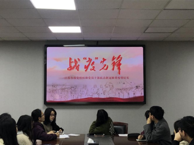最后,与会党员一起观看了江苏《战“疫”先锋》纪录片,并分享感悟。在疫情来临时,有一群人冲在前方,用自己平凡的身躯为身后亿万中国人筑起防护的堡垒,他们舍小家为大家,战斗在这场没有硝烟的战场上。他们是来自全国各地的最美逆行者,他们是新时代的最美先锋人物,他们也是值得我们学习的模范人物。