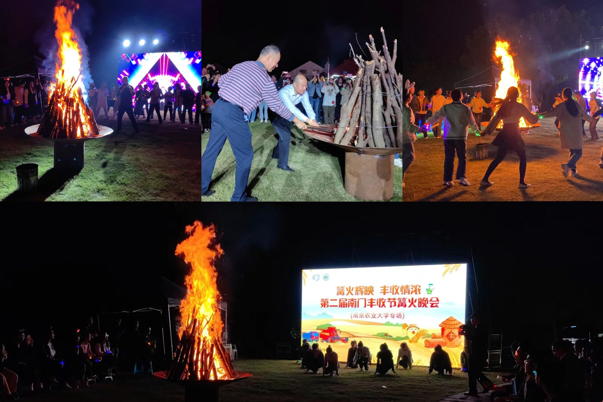 文化遗产和旅游管理大二大三年级同学策划了一场别开生面的篝火晚会。篝火晚会以秋季丰收和篝火为主要元素,活动在迎火舞表演中拉开帷幕。来自各个专业的研究生、本科生们头戴牛角灯、手扣荧光环,挥舞着手中的荧光棒,闻着氤氲的烤串香气,听着旋律动听的美妙音乐,沉醉在热闹的气氛中。篝火庆丰收,歌舞享喜悦。新时代的大学生们在五谷丰登的氛围中共同享受新时代农村生活的幸福和美。