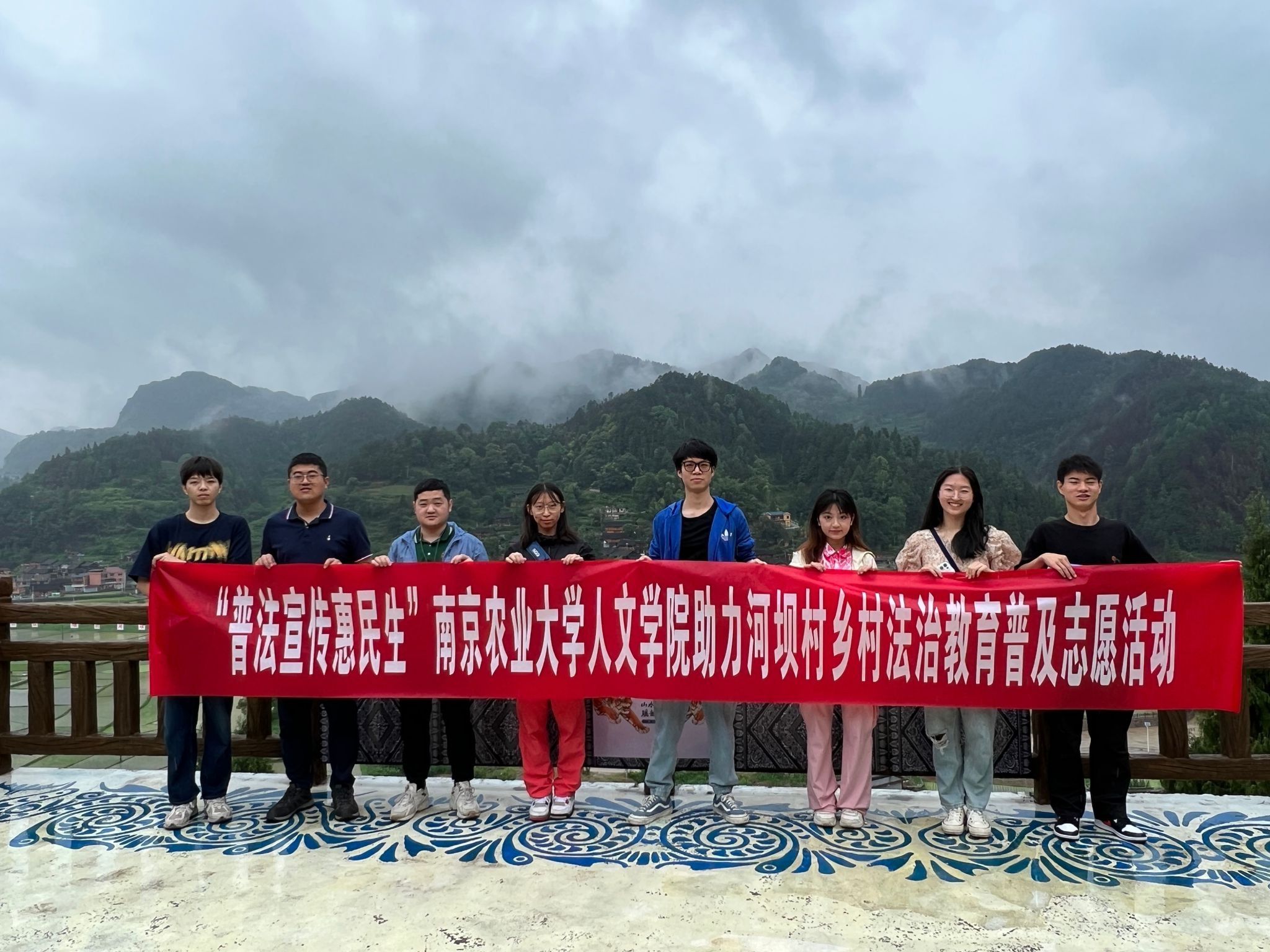 师生发挥专业资源优势,助力河坝村开展“四大行动”中的乡村法治教育普及行动,构建“高校志愿+”模式,持续增强村民群众法律意识。
