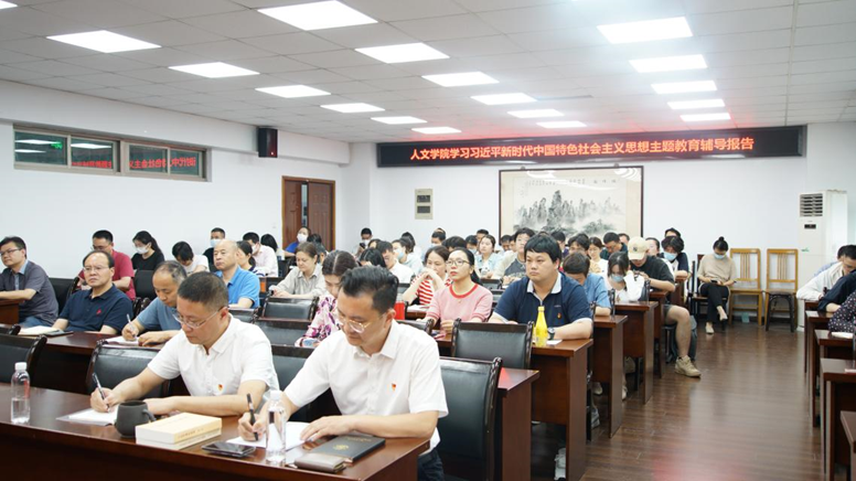 开展主题教育活动,邀请学校党委副书记、纪委书记吴荣顺作 “探索新文科背景下哲学社会科学发展‘人文之路’,造就新时代胸怀国之大者立德树人四有‘大先生’”专题辅导报告。学院党委书记李日葵、院长卢勇、党委副书记冯绪猛、副院长戚晓明,及各系主任、教师党支部书记、教师代表等70余人聆听了报告。报告会由李日葵主持。
