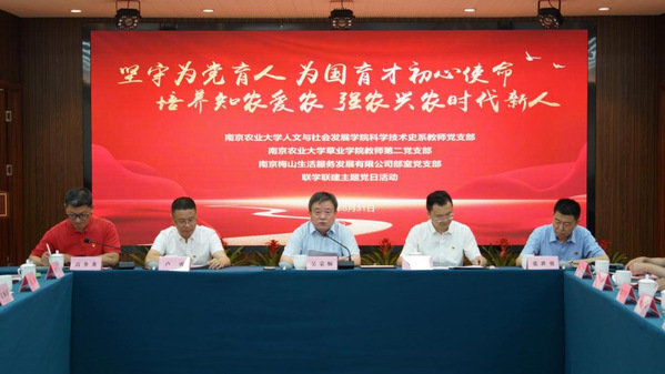 校党委副书记、纪委书记吴荣顺表示,本次联学联建是以为党育人、为国育才为初心使命,以两院一企深度融合协作为联建基石,以两个学院在推动中华农业伦理学发展的合作为重要依托,以培养知农爱农、强农兴农的农业农村现代化建设急需人才为共同目标,以学科专业在研究领域互有交叉为纽带,通过理论联学、学科联建的形式,探索产学研深度融合发展的创新模式。为进一步凝聚新共识、深化新合作、共谋新发展创造有利条件,切实把习近平总书记的重要讲话精神转化为指导实践、推动工作的强大力量,让高校主题教育走深走实、入脑入心、见行见效。他指出,南农作为涉农高校排头兵,开展主题教育活动要牢记为党育人、为国育才的初心使命,要紧扣建设教育强国、人才强国的首要任务,要有力回答“强国建设、教育何为”这一时代课题,把农业特色、世界一流融入到新时代办学治校各领域和全过程。涉农高校教师应以主题教育为契机,进一步加强师德师风建设,争做新时代四有“大先生”。