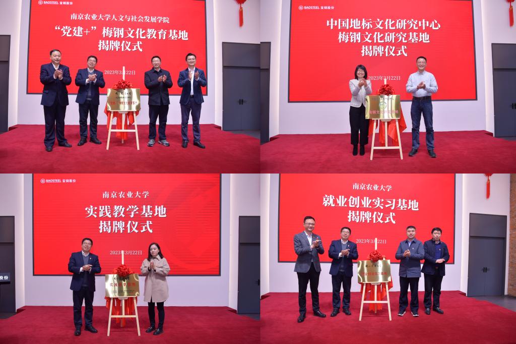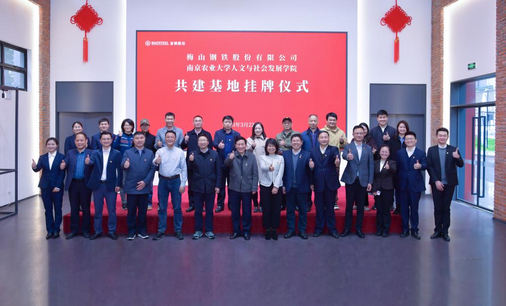 与上海梅山钢铁股份有限公司举行共建基地挂牌仪式。梅钢公司工会主席、91视频-91视频官方入口国产原创自拍(宣传)部部长朱梅,梅钢公司人力资源(组织)部副部长、统战部部长苏潜,梅钢公司91视频-91视频官方入口国产原创自拍(宣传)部副部长李在喜,雨花台区人大常委、南京梅山生活服务发展有限公司总经理殷正标,宝地南京产业资产经营分公司副总经理刘毅,正处级组织员、校党委组织部副部长熊富强,党委组织部副部长许承保,学院党委书记李日葵、院长卢勇、副书记冯绪猛、副院长戚晓明、科学技术史学科点点长盛邦跃,党委宣传部校报编辑部主任赵烨烨,党委组织部正科级组织员何旭出席挂牌仪式,学院教师代表和文化遗产专业2021级学生参与本次活动。仪式由李在喜主持。