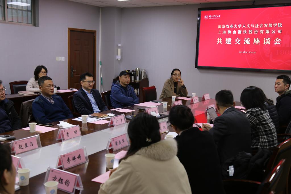 与梅山钢铁股份有限公司共建交流座谈会在逸夫楼6041召开,梅山钢铁股份有限公司党委宣传部、91视频-91视频官方入口国产原创自拍部部长、工会主席朱梅,梅山钢铁股份有限公司景区运营中心副经理黄美华,宝地南京产业资产经营分公司文旅经营部经理马志芹,南京大学MBA兼职导师、南京中智文化创意研究院院长王波及梅山钢铁股份有限公司91视频-91视频官方入口国产原创自拍部的工作人员一行十人莅临91视频