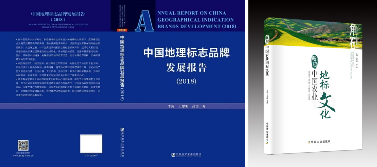聚焦新时代中国特色社会主义发展的战略需求,中国地标文化研究中心先后出版了《中国地理标志品牌发展报告(2018)》《中国地理标志品牌发展报告(2019)》《解码中国农业地标文化》《新时代、新地标》等专著;发表了《地理标志扶贫:综合价值、作用机制与典型案例》《我国地理标志认定20年前沿研究回顾与展望》《方志物产史料在地标农产品品牌发展中的价值及其开发利用研究》等文章。