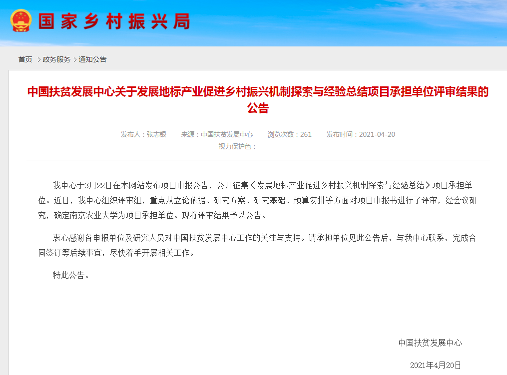 中国地标文化研究中心在国内诸多竞标单位中脱颖而出,成功中标国家乡村振兴局公开招标的《发展地标产业促进乡村振兴机制探索与经验总结》项目。