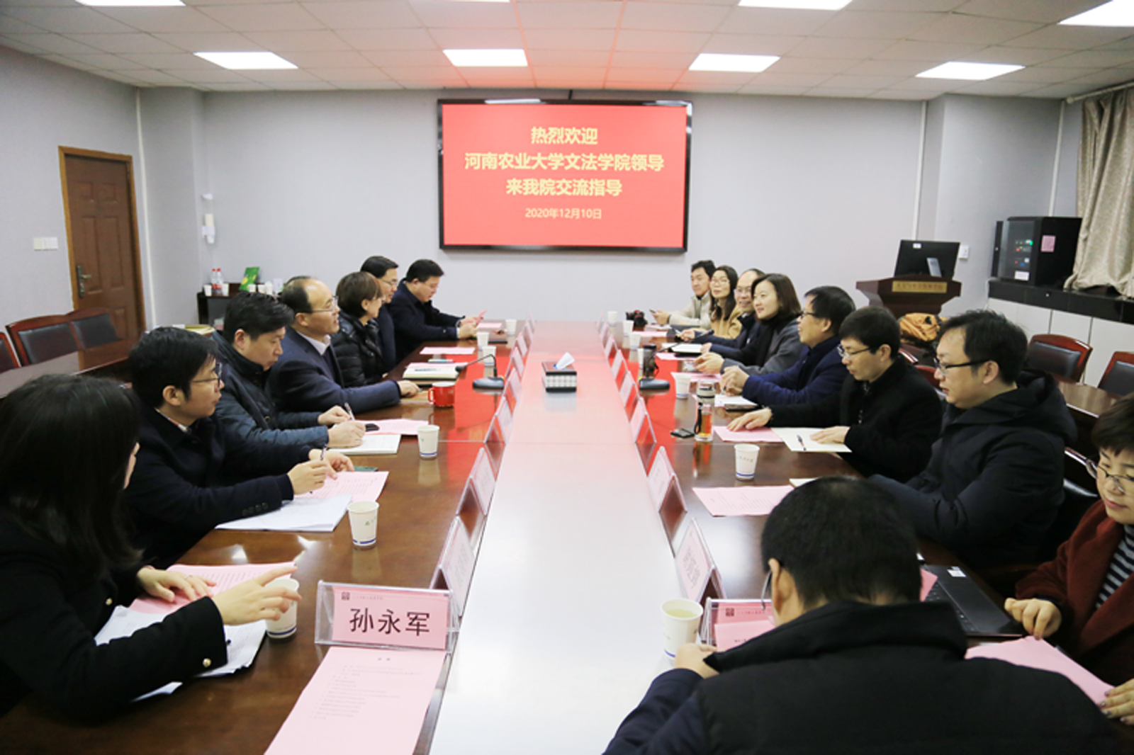 12月10日上午,河南农业大学文法学院党委书记牛娟、院长王晓勇、副院长李伟、行政管理系主任管煜武、法律系副主任赵菊敏、汉语言文学系副主任王睿、社会学系副主任谢娅婷、院党政办主任张二龙等一行8人前来91视频