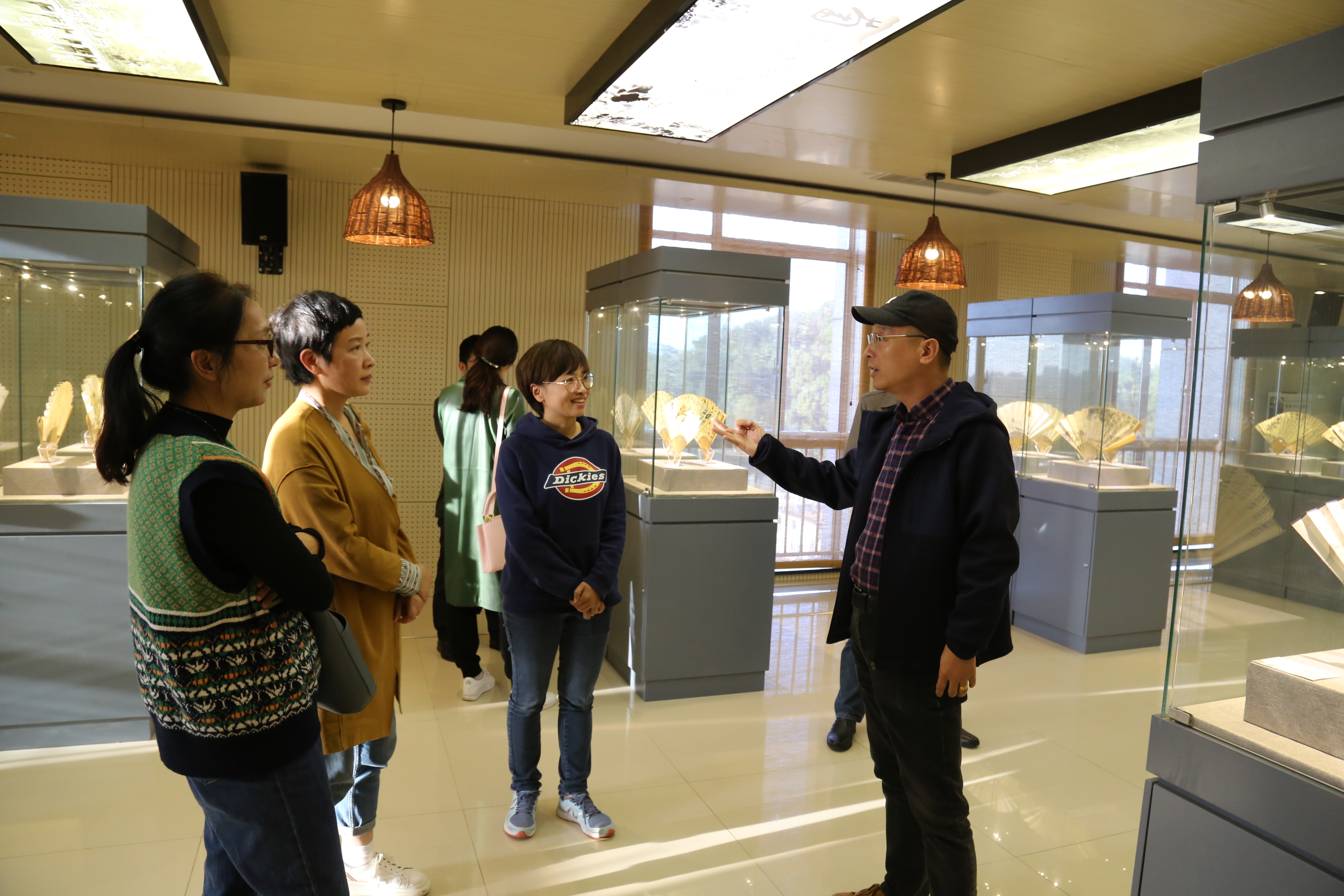 在金陵竹刻艺术博物馆,学习团队听取了谷正宏馆长关于金陵竹刻发展史和艺术价值的介绍,观赏了“十八罗汉”竹根雕刻作品和中国风扇面竹刻作品,并与该馆就合作开展非物质文化遗产相关研究和传统文化实践性课程建设方案做了深入探讨。
