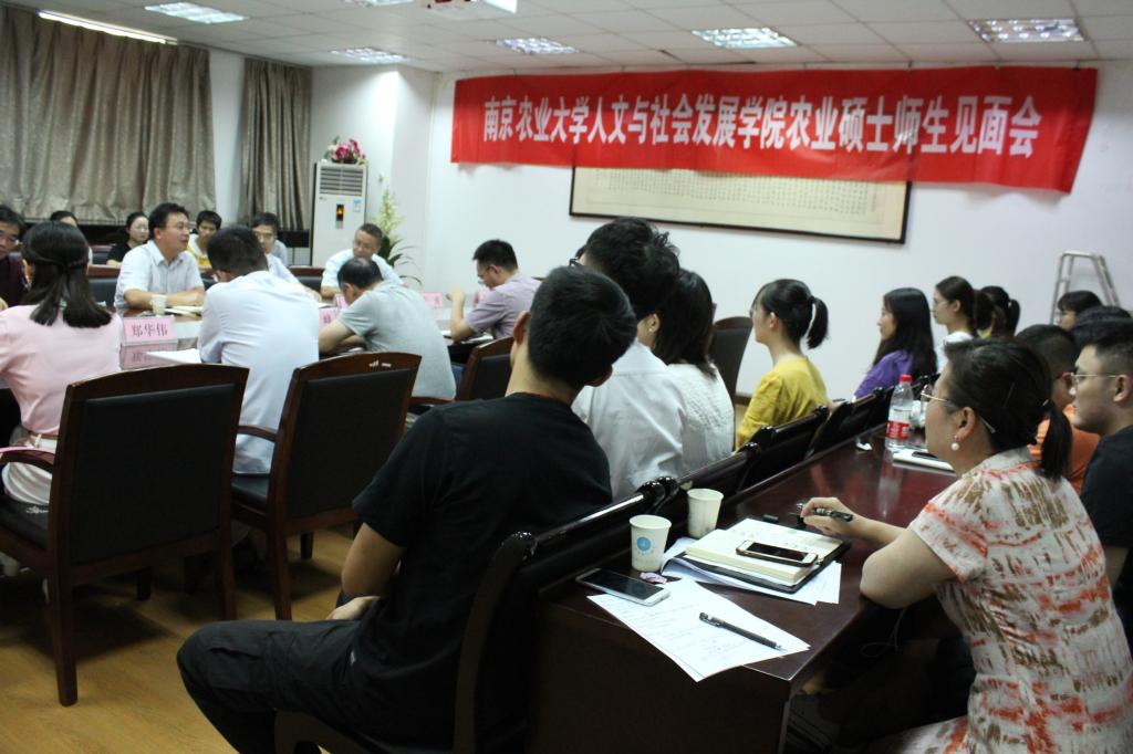 逸夫楼6041室顺利召开。出席本次见面会的有李群教授、朱世桂教授、许泉教授、卢勇教授、崔峰教授、冯绪猛副教授、余德贵副教授、黄武副教授、郑华伟副教授、黎孔清副教授、朱冰莹老师等学科点导师,以及2019级全体农业硕士。本次见面会由学科点点长朱利群教授主持。