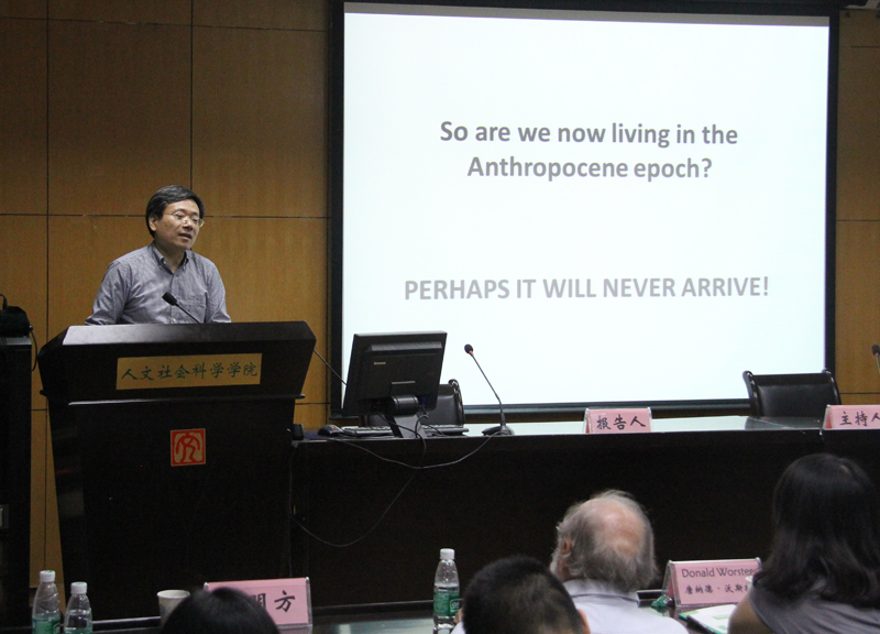 Donald Worster教授以“Are we now living in the Anthropocene?”为题对Helmuth Trischler 教授的观点提出了质疑。他首先对“人新世”概念是否成立进行了剖析。他将“人新世”这个词解读为“人类最新的、最近的地质时代。”但“地质时代”在不同发展阶段其定义全然不同。接下来,Donald Worster教授谈到自己最感兴趣的一点,即人文学者们研究这一问题的热情究竟从何而来。对此,他将关于“人新世”这一名称的讨论分为两个不同的学派:凯歌学派(启蒙计划学派)、绝望学派(焦虑派或者批判派)。前者认为人类已主宰了自然,已征服了自然,人类对自然的改造可让其更美好。后者认为人类对地球的征服带来更多危机,不仅有生态危机、环境危机,还包括人类自身的危机。而Donald Worster教授本人则更倾向于后者,他并不认同具有暴力的物种可以塑造一个更好的地球。在枚举了不同时代人类对地球可能带来的影响后,他指出在未来50年,人类完全主宰地球的趋势将不断变缓。一方面,我们应该明白,地球从来都没有完全掌握在人类手中;另一方面,我们的观念及对地球的态度都在改变,这种改变必然造成我们对地球影响的改变。至少在现时现刻,我们还没有看到“人新世”的到来。针对Donald Worster教授的质疑,Helmuth Trischler教授作出了回应和辩驳。