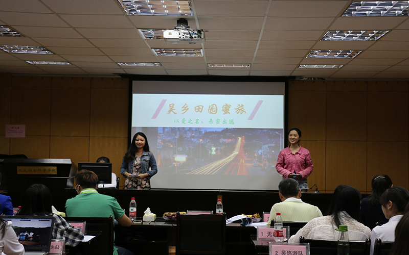 2015年5月17日下午13时30分,以“穹顶之下,梦寻江苏美丽乡村”为主题的第二届江苏省“金沙湖”杯大学生旅游路线规划大赛初赛在逸夫楼6047如期举行。出席本次大赛的评委有南京华丽旅游人才培训中心有限公司副总郑素芬、江苏舜天海外旅游公司同业销售事业部经理、门店运管部经理徐伟、91视频