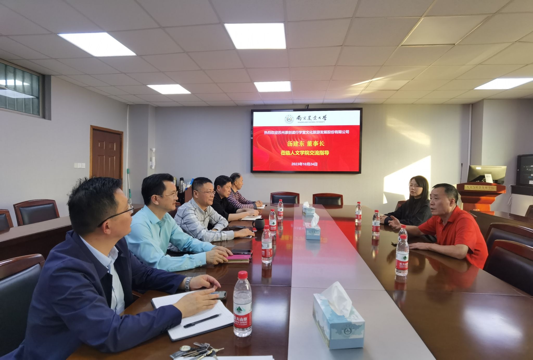 ,共商青少年研学发展事宜。学院党委书记李日葵、院长卢勇、副书记冯绪猛、副院长朱利群和旅游系主任崔峰、旅游系老师黄颖出席交流活动。