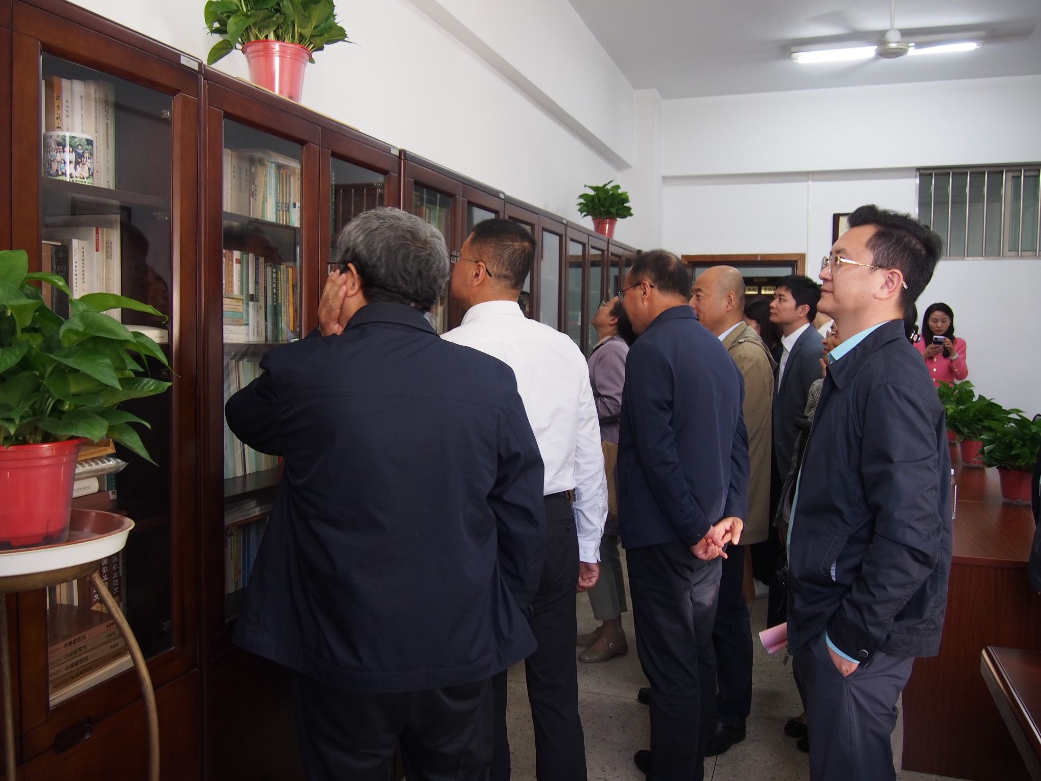 之后,周建波教授、王加华教授、卢勇院长以及王思明教授第一位博士研究生沈志忠教授一起为“王思明文库”的牌匾揭牌。随后,在卢勇院长的带领下,各位领导、王门弟子以及师生代表参观了王思明文库,为还原的办公现场而感怀,也为充满学术气息的文库而欣慰。