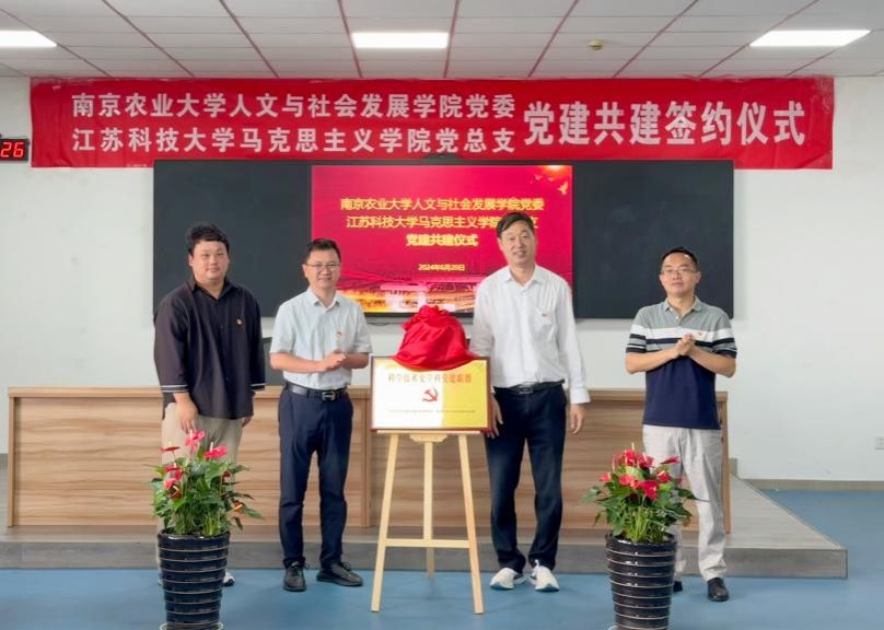 党委书记李日葵与江苏科技大学马克思主义学院院长洪波为两院“科学技术史学科党建联盟”揭牌。