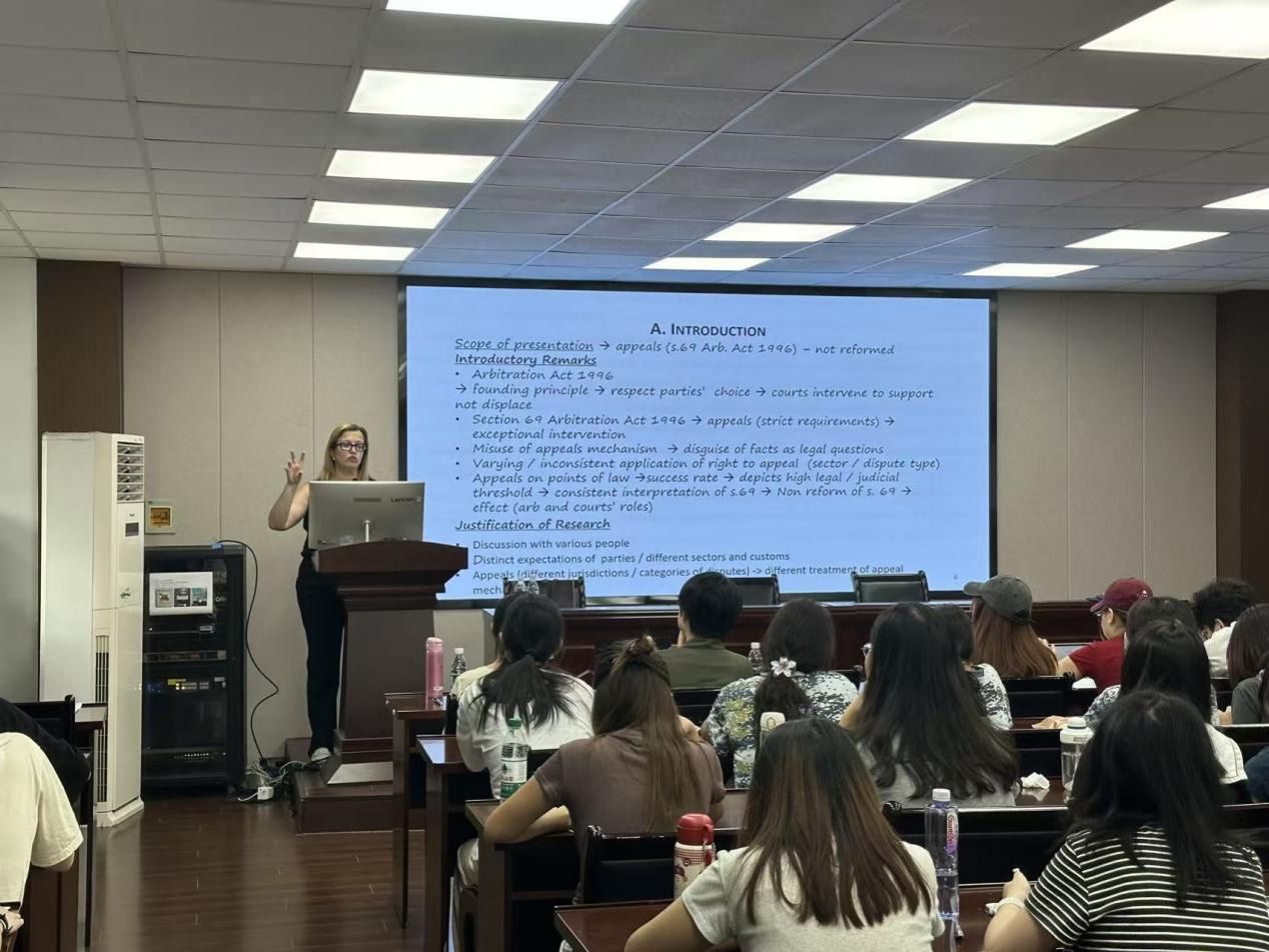 师生举办了题为“国际商事仲裁的发展与未来”的专题讲座,法律系教师董璐宇主持。