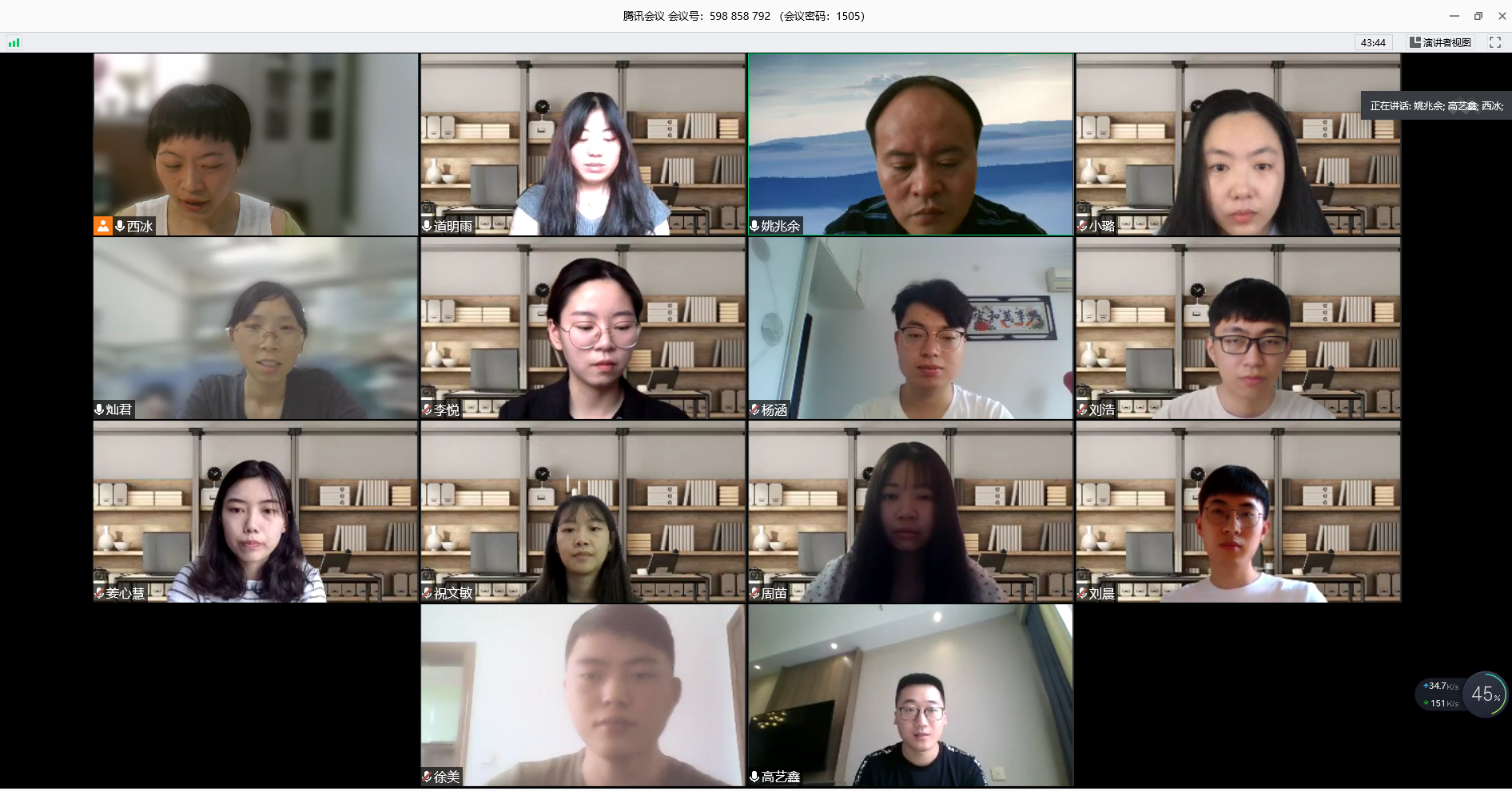 社会学、公共事业管理、农村区域发展、表演等4个专业,采用了腾讯会议、QQ课堂等“云”答辩方式。每个专业根据学生人数,分成3-4个云答辩组,通过学生陈述、答辩委员提问、学生回答、答辩委员提出完善建议等环节,给学生的毕业论文“问诊把脉”。