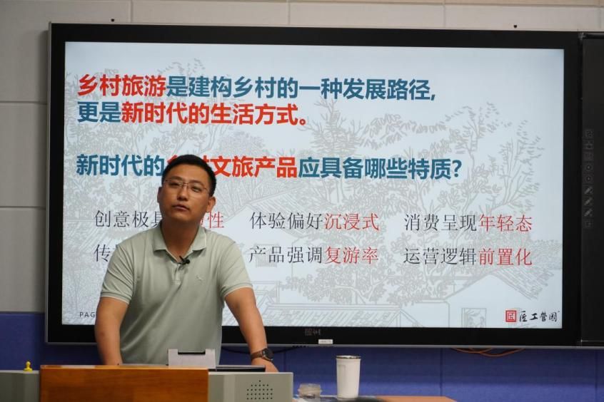 江苏匠工营国规划设计有限公司遵循“用生命赞美城市”的价值主张,以“匠工匠世、营村营国”为价值目标,以规划民众幸福生活为己任,把好作品、好方案写在大地上。适逢519中国旅游日、旅游专业校友分会成立六周年之际,5月17日,江苏匠工营国规划设计有限公司常务副总经理石浩玉受邀第四次来到旅游策划学课堂,进行上下午持续4学时的乡村旅游开发实操讲授。