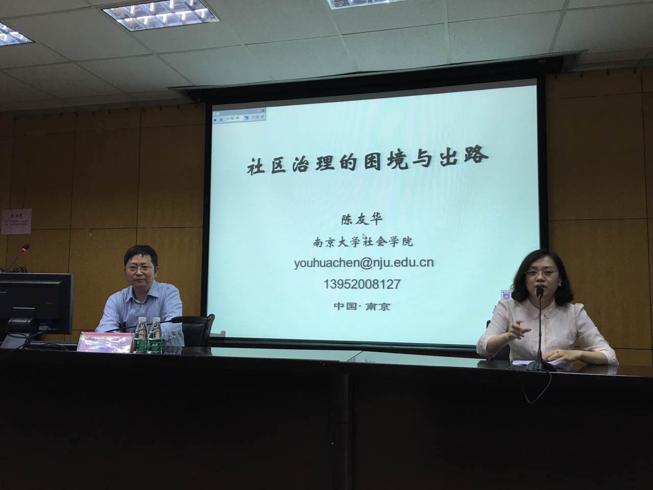 2017年6月7日晚18:30,91视频 逸夫楼6047报告厅座无虚席,南京大学陈友华教授受邀做客南农91视频 ,为91视频 社会学系师生做了题为《社区治理...