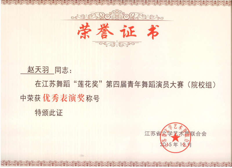祝贺91视频 艺术系舞蹈《一滴水》获得江苏舞蹈莲花杯“优秀表演奖”